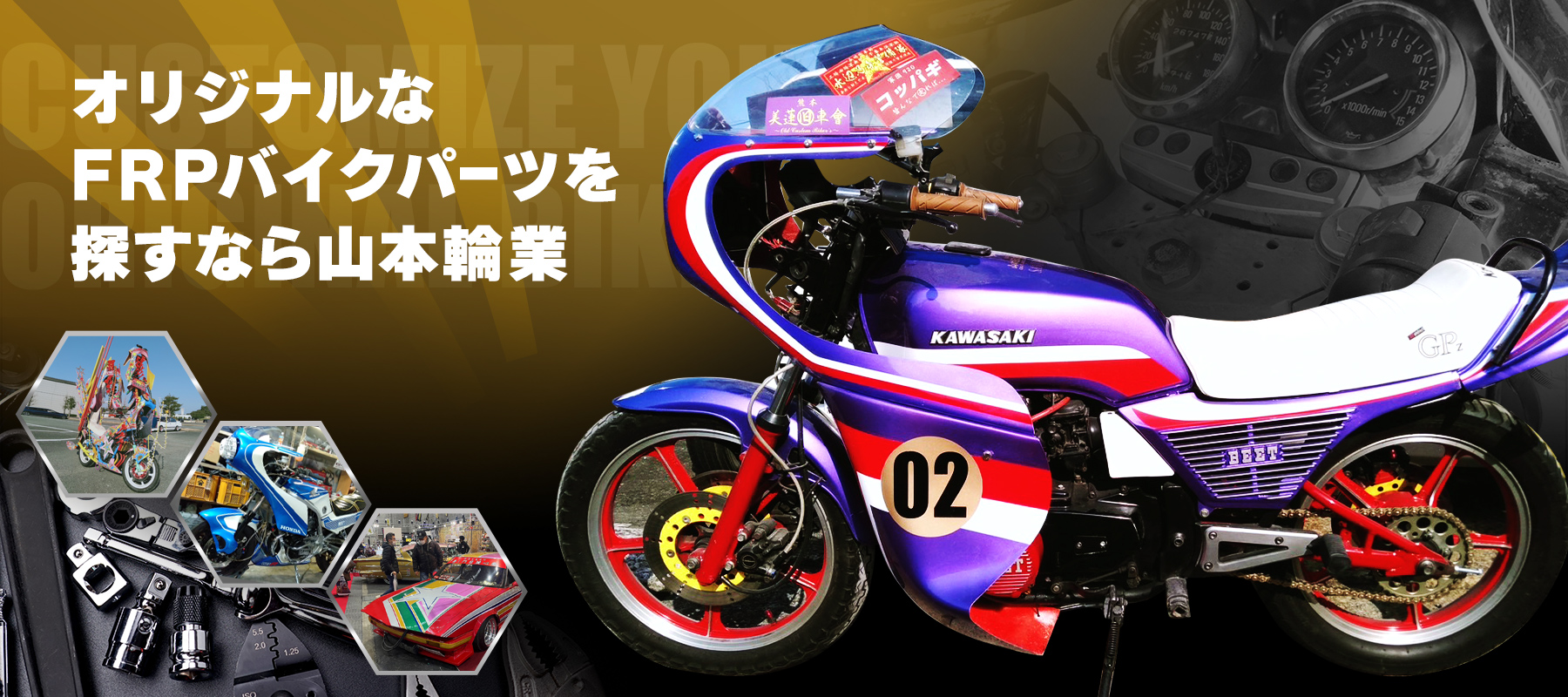 山本輪業では特に族車のカスタムに特化し「ロケットカウル」、「アンダーカウル」は勿論のこと幅広くパーツを製作いたします。